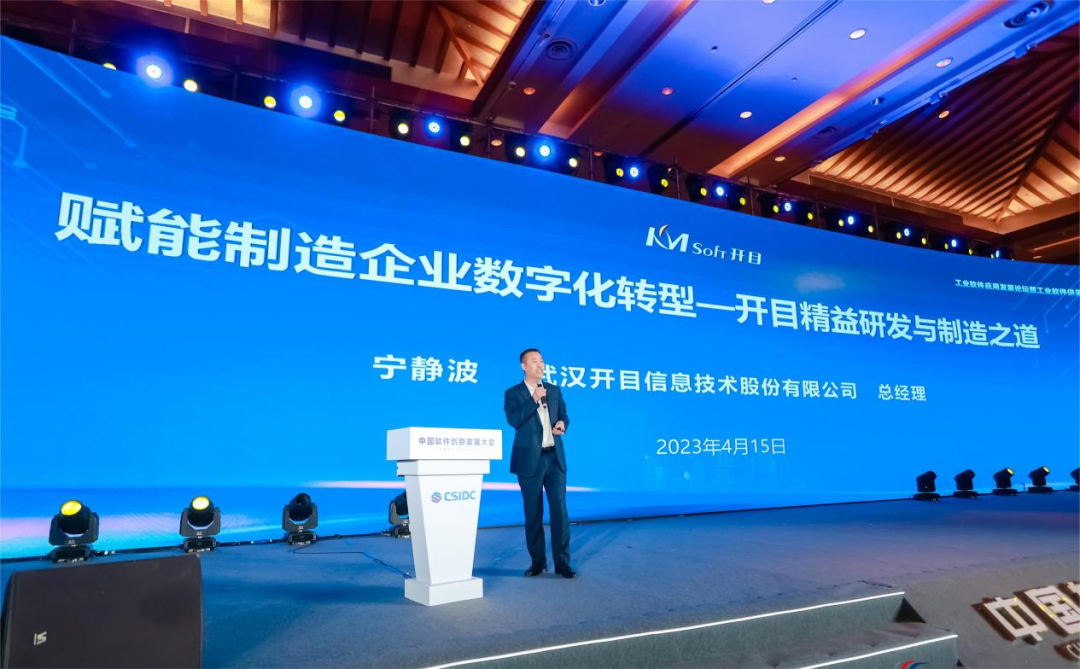 随后,开目软件宁静波总经理受邀发表《赋能制造企业数字化转型—开目精益研发与制造之道》主题演讲。宁总从数字化转型趋势和工业软件国产化替代特点切入,介绍了开目精益研发与制造整体解决方案、转型框架和实施方法。