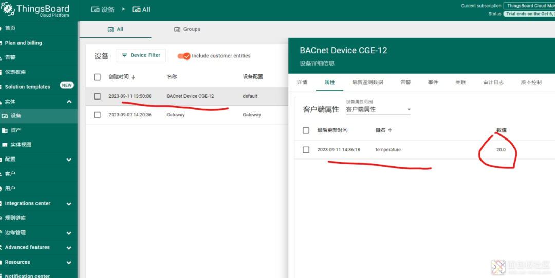 可以看到网关已经成功添加了我们的设备,并且采集到了设备的temperature数据。
